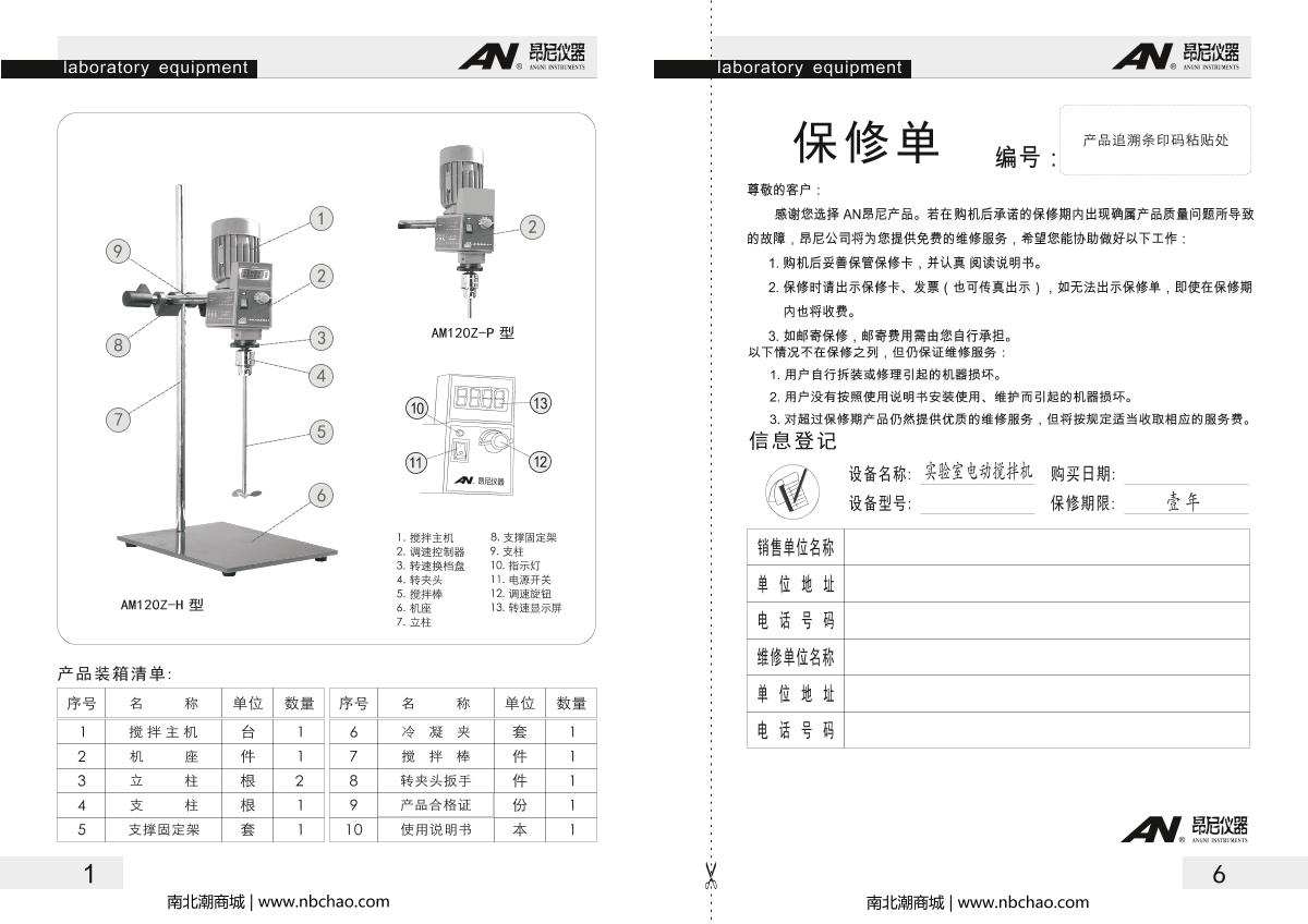 AN AM120Z-P Cantilever Stirrer Manual,OI