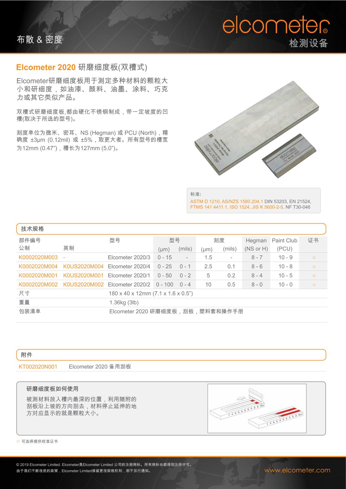 Elcometer Elcometer 2020/1 fineness grindometer brochure