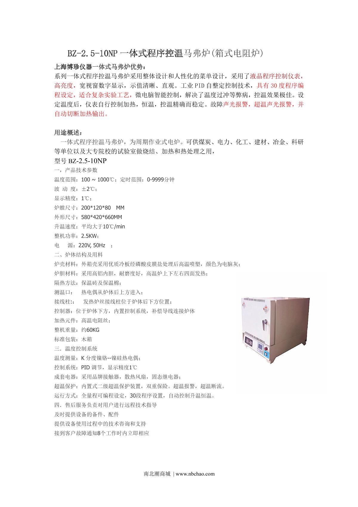 BoZhen BZ-2.5-10P Program temperature control muffle furnace brochure