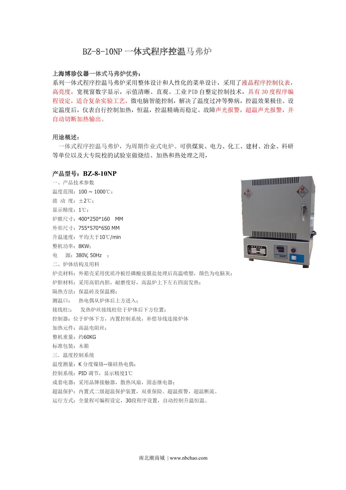 BoZhen BZ-8-10P Program temperature control muffle furnace brochure