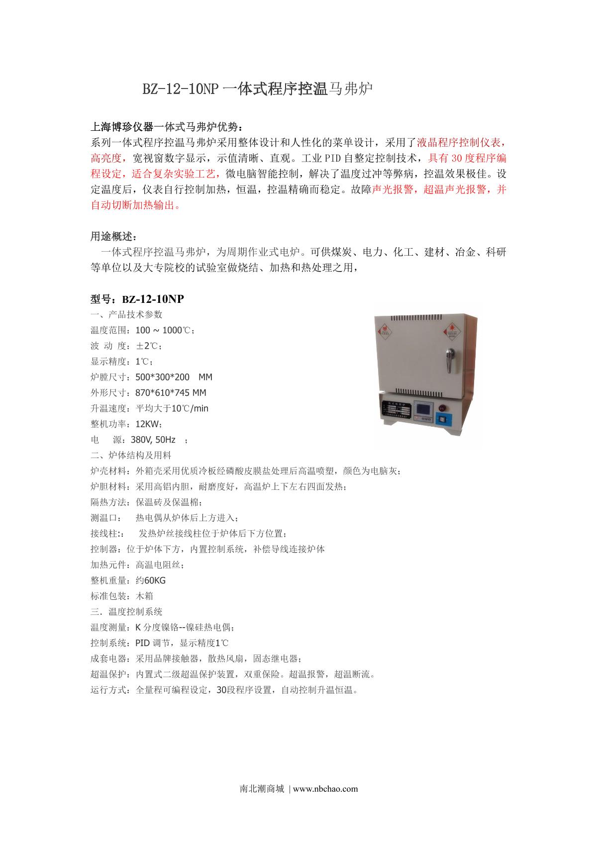 BoZhen BZ-12-10P Program temperature control muffle furnace brochure