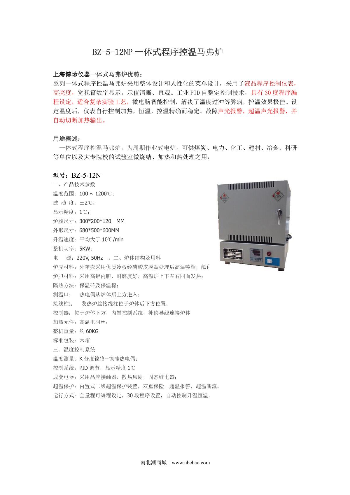 BoZhen BZ-5-12P Program temperature control muffle furnace brochure