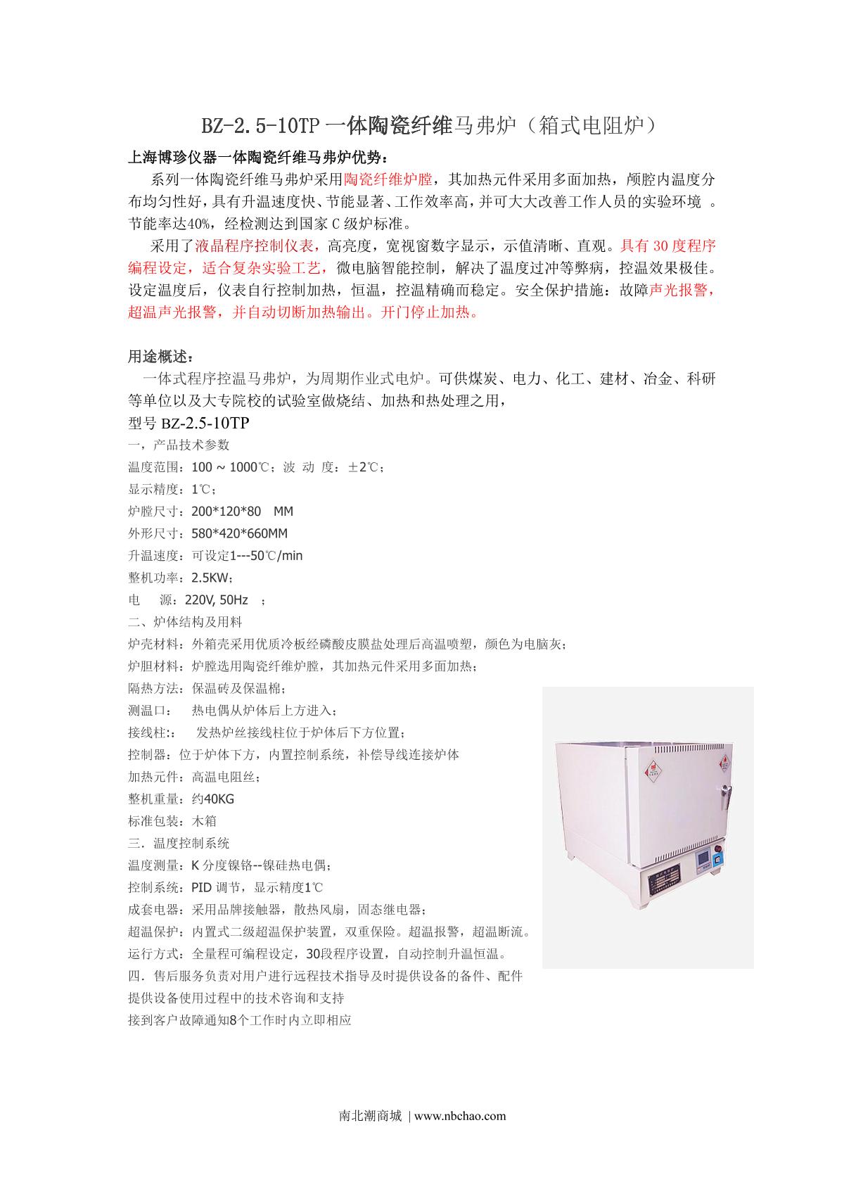 BoZhen BZ-2.5-10TC Ceramic fiber muffle furnace brochure