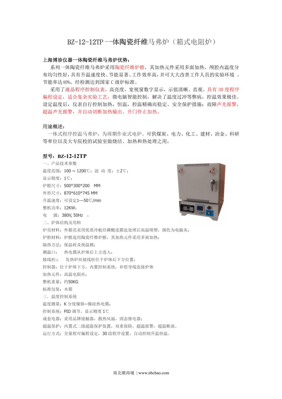 - 8BoZhen BZ-10-12P Program temperature control muffle furnace brochure