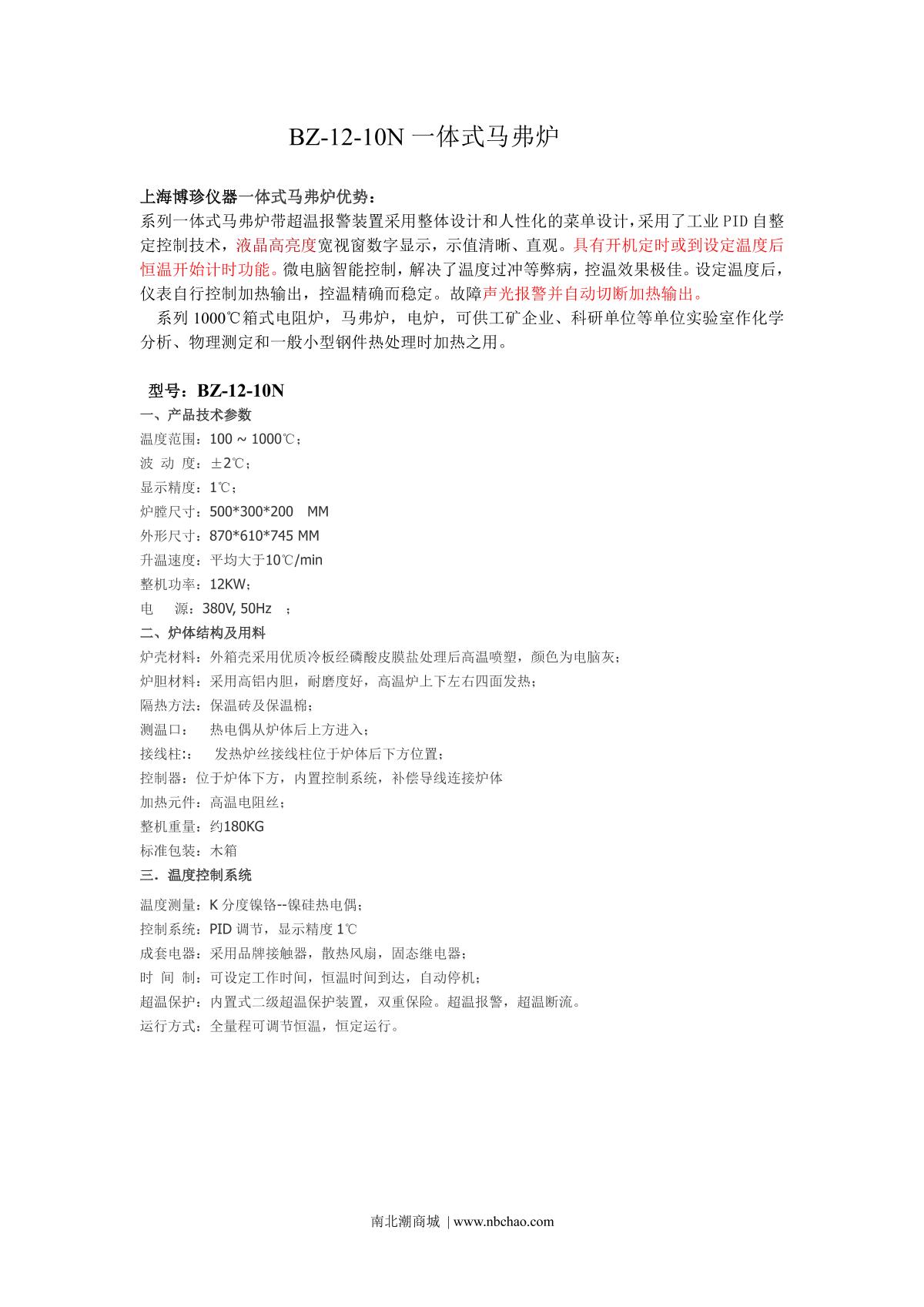 BoZhen BZ-12-10 Integrated Box-Type Resistance Furnace brochure