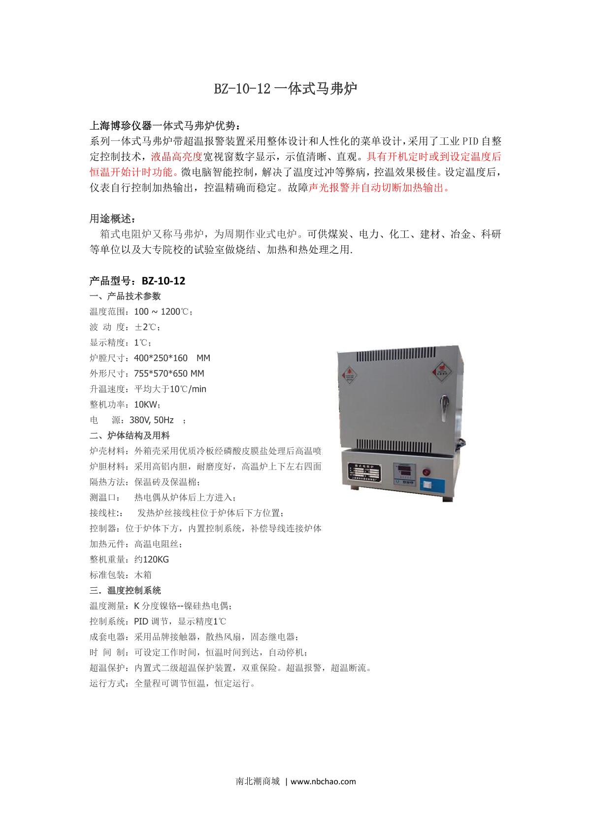 BoZhen BZ-10-12 Integrated Box-Type Resistance Furnace brochure