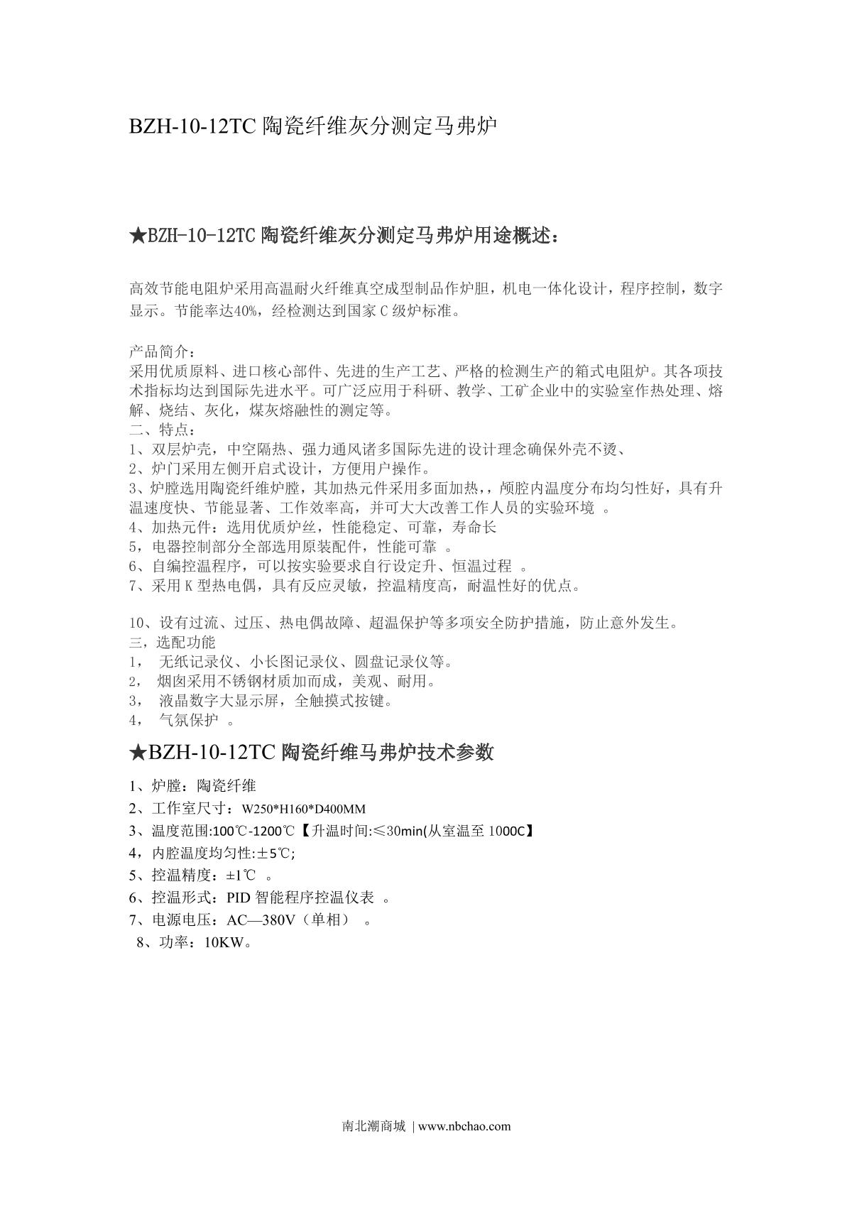 BoZhen BZH-10-12TC Ceramic fiber ash determination muffle furnace brochure