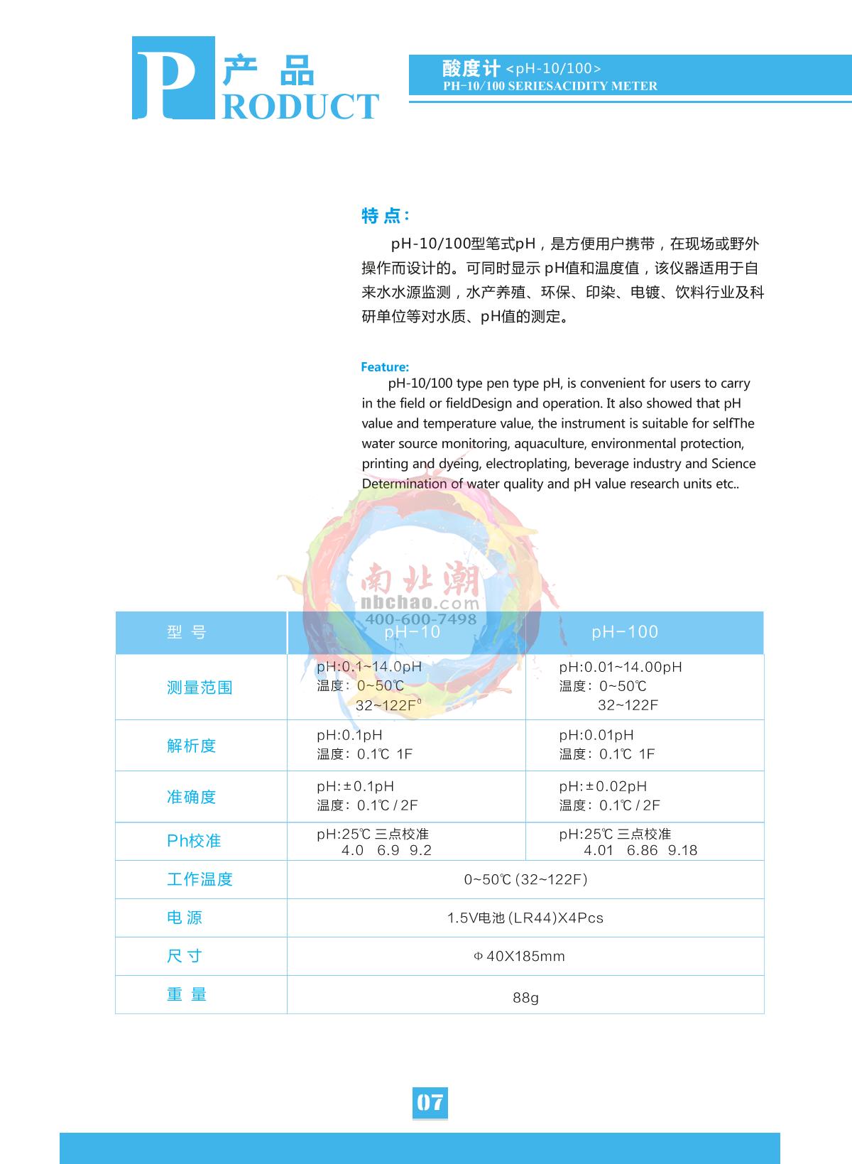 - 7Bante Bante221-CN Portable pHmeter brochure