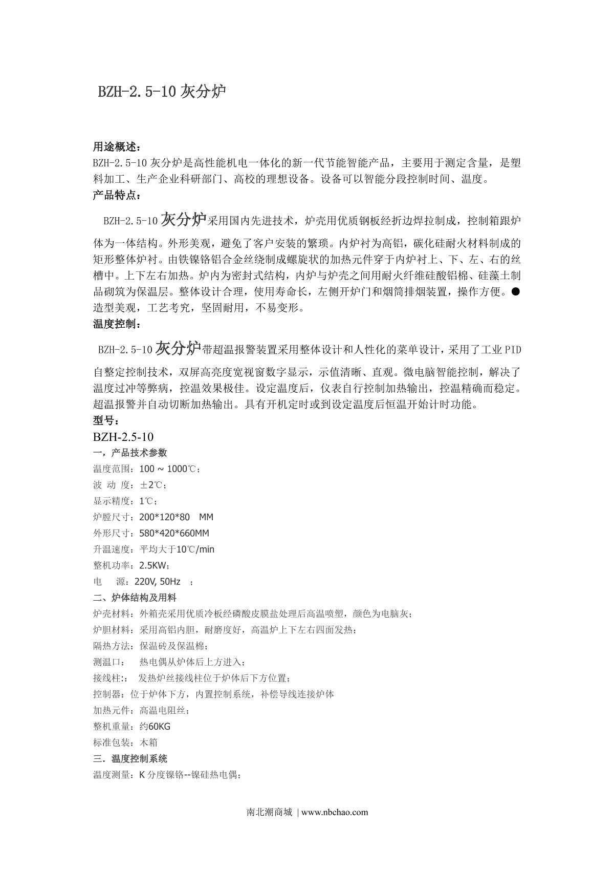 BoZhen BZH-2.5-10 Ash determination muffle furnace brochure