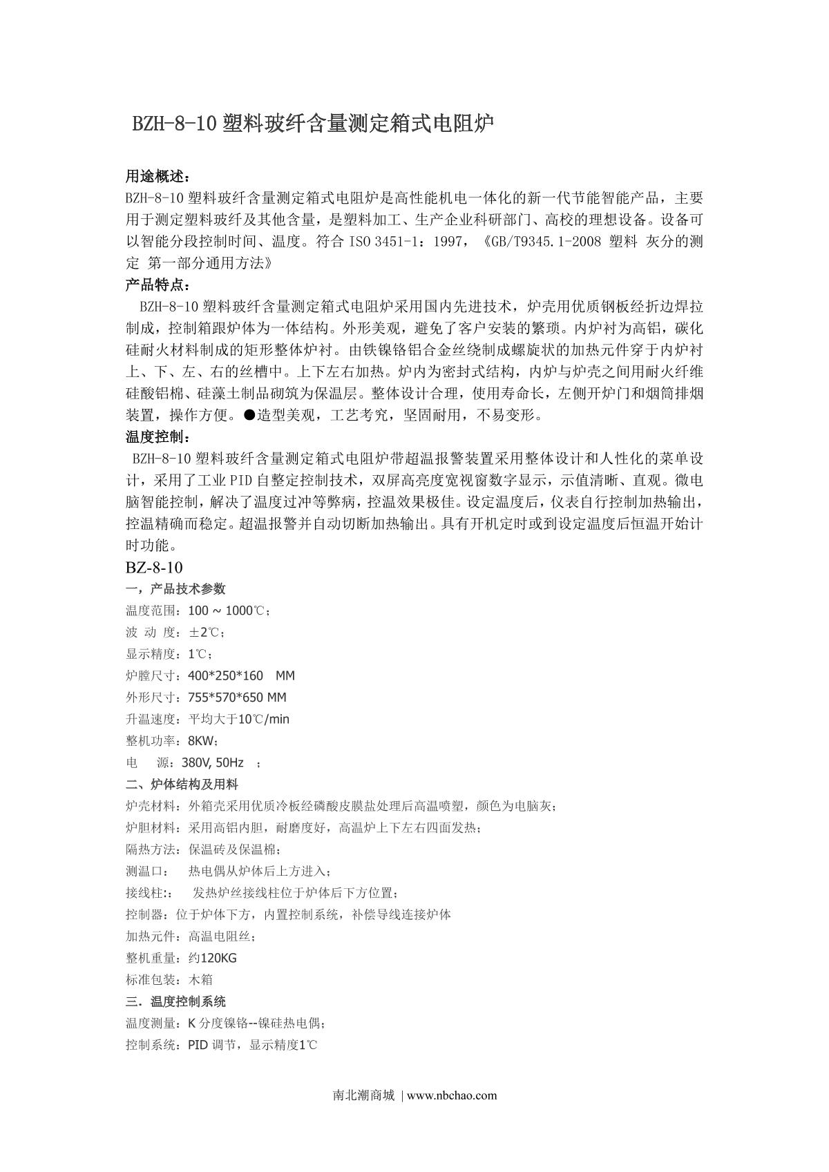 BoZhen BZH-8-10 Ash determination muffle furnace brochure