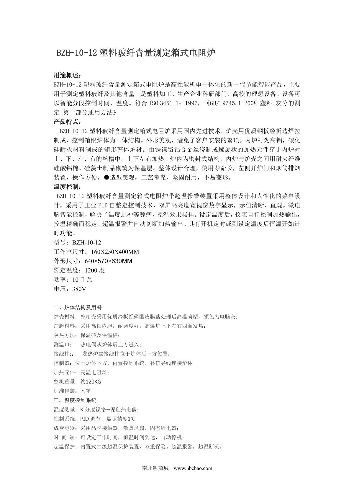 - 5BoZhen BZH-12-12 Ash determination muffle furnace brochure