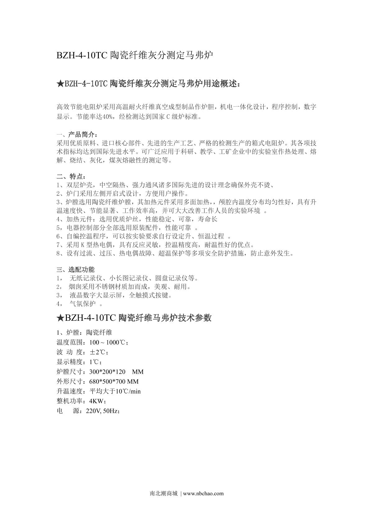 BoZhen BZH-4-10TC Ceramic Fiber Ash Determination Muffle Furnace brochure