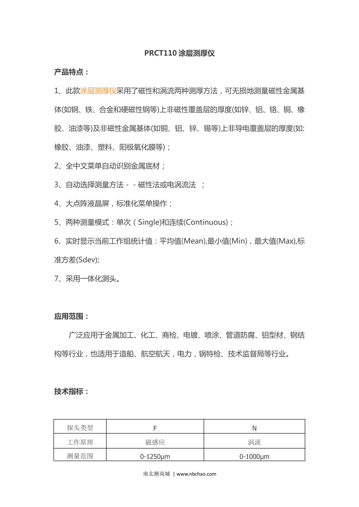 Ipre PRCT110 Coating Thickness Gauge brochure