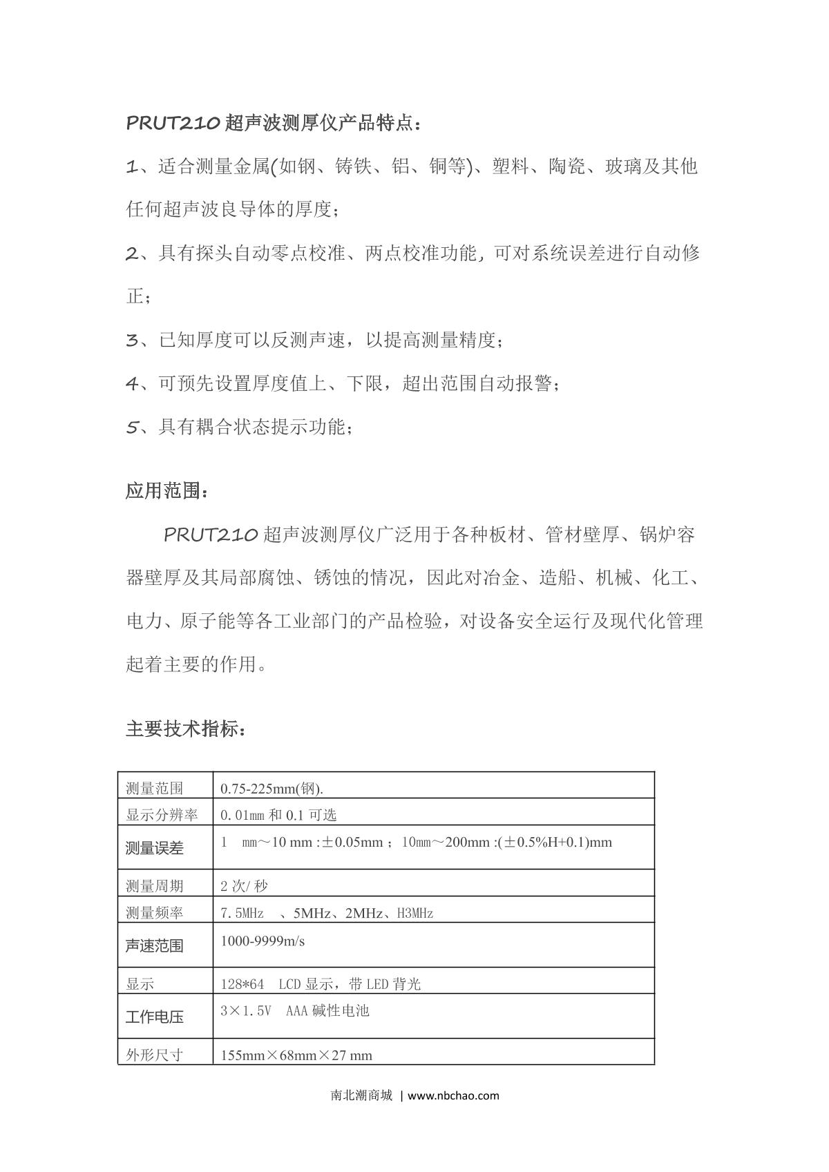 Ipre PRUT210 Ultrasonic Thickness Gauge brochure