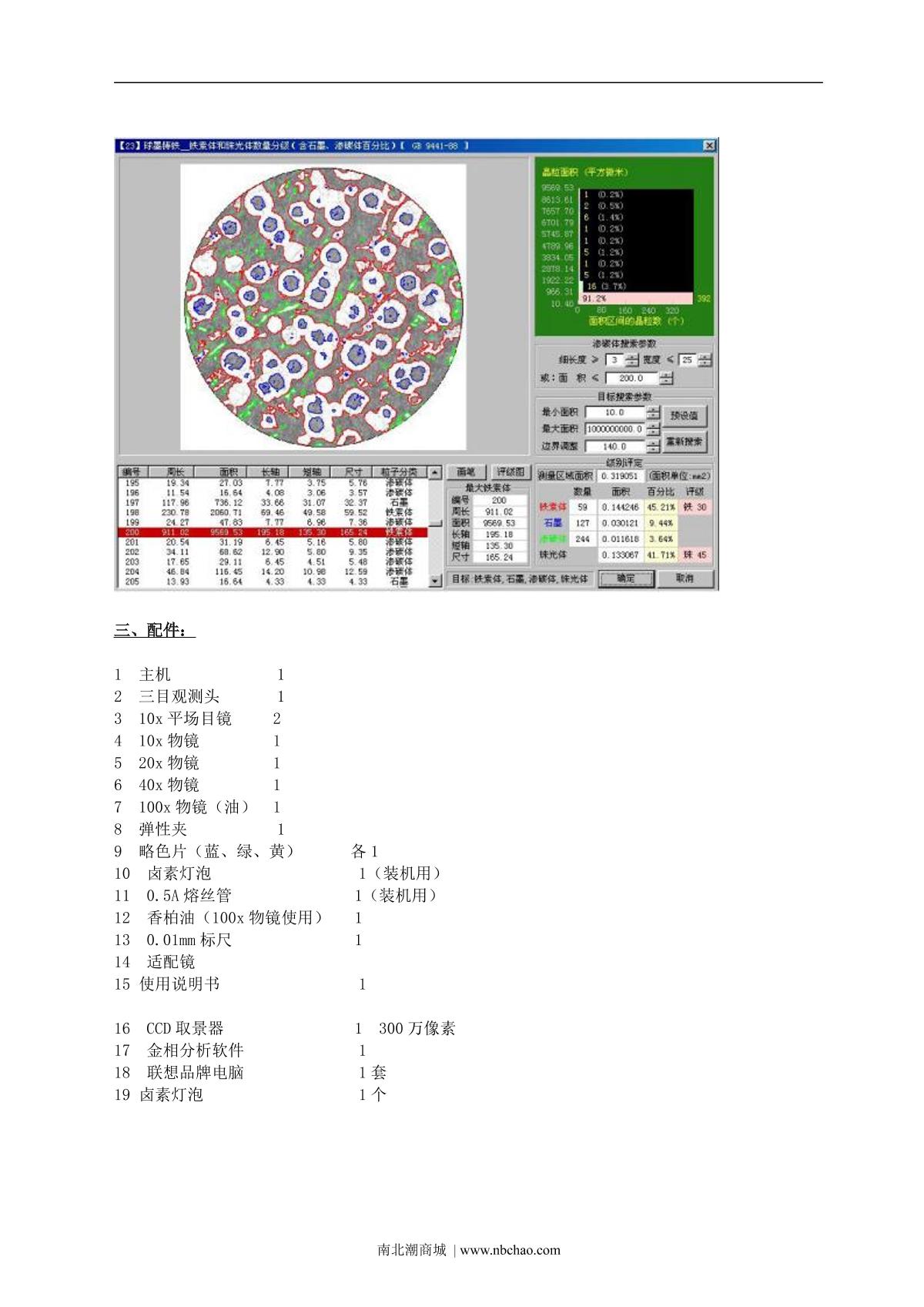 IPRE FL8000W Trinocular Upright Metallurgical MicroscopyLarge field of view WF10X (0019 22mm)Infinite distance flat-field color difference objective (without coverslip) PL 5X/0.12, L10X/0.25, L40X/0.60, L60X/0.70Triple eyepiece, tilted 30 °, (built-in polarizer, switchable)SE -