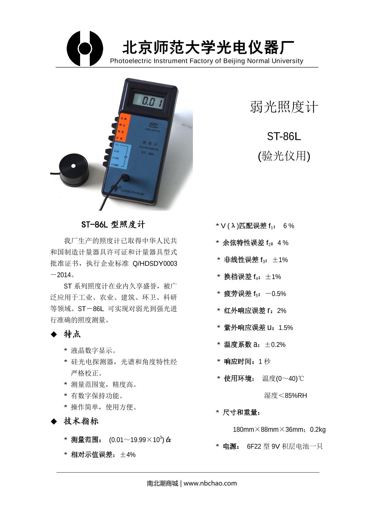 BeiShiDaGuangDianYiQi ST-86L (for optometry) Low light luminometer brochure