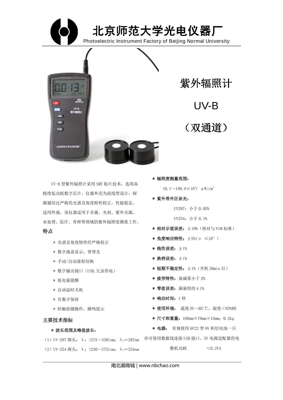 BeiShiDaGuangDianYiQi UV-B (dual channel) UV Irradiometer brochure