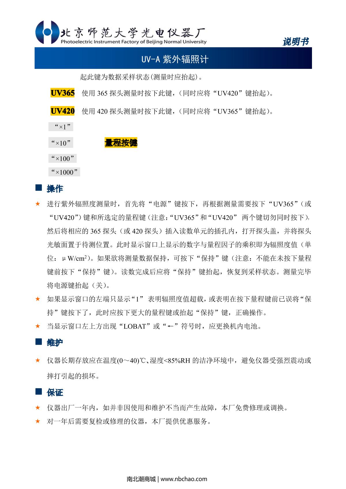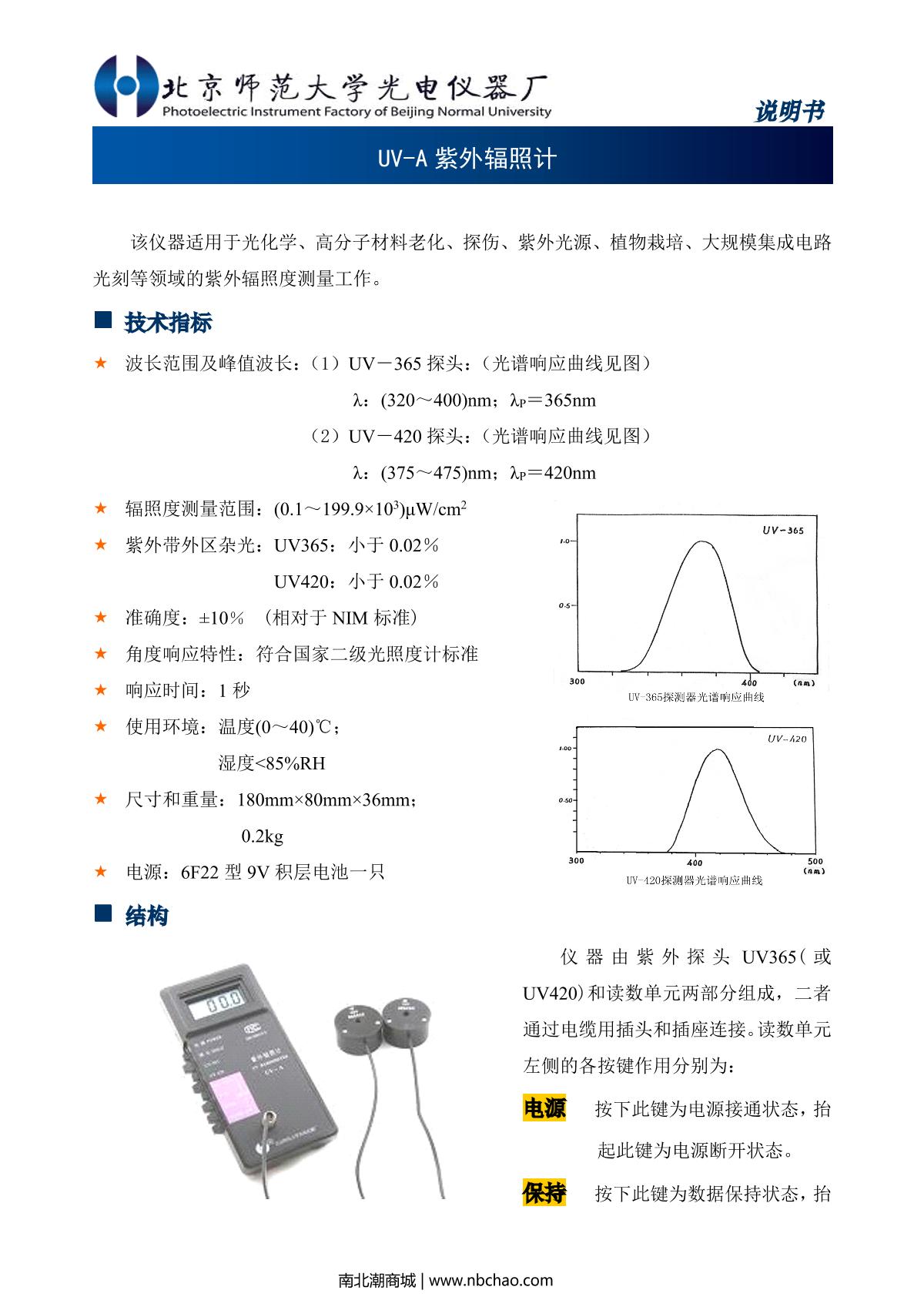 BeiShiDaGuangDianYiQi UV-A(UV-365) UV Irradiometer Manual,OI