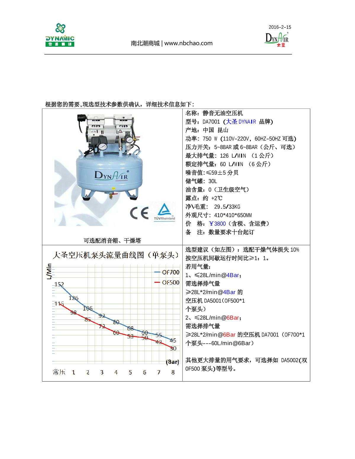 DaSheng DA7001 Oil-free Air Compressor Manual,OI