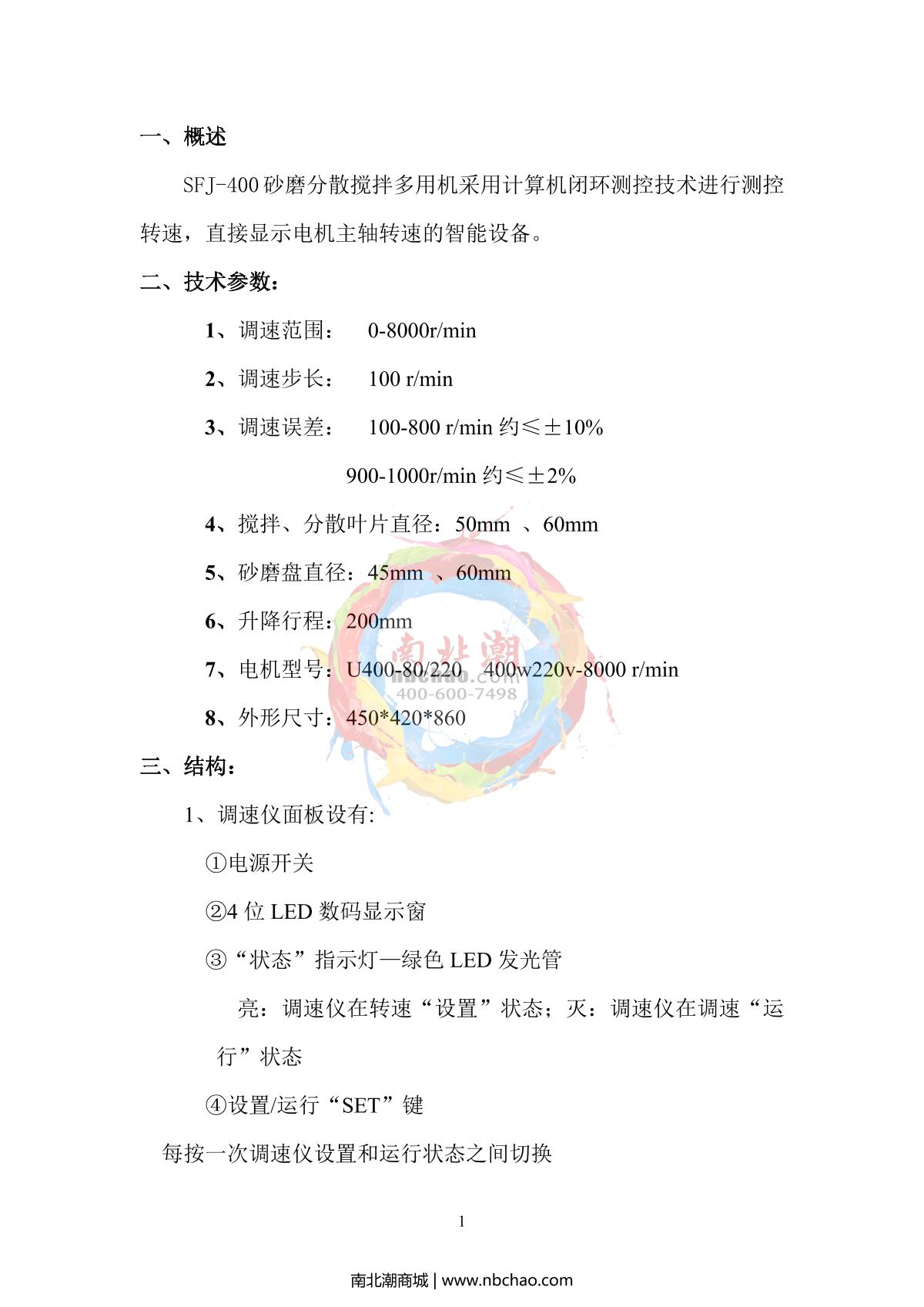 SHIBO SFJ-400 Mixing and dispersing sand grinding multi-purpose machine Manual,OI