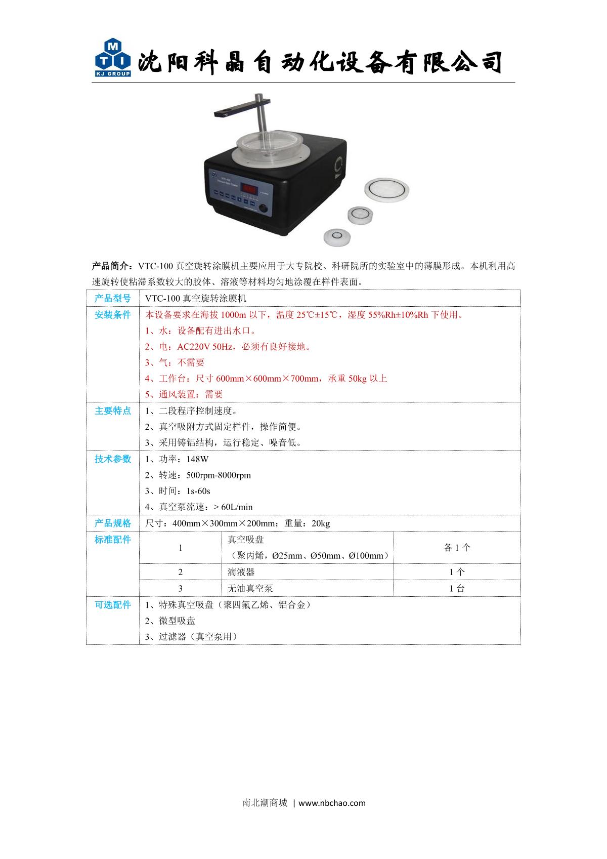 ShenYang KeJing VTC-100 Vacuum swirling/spinning Film Applicator brochure