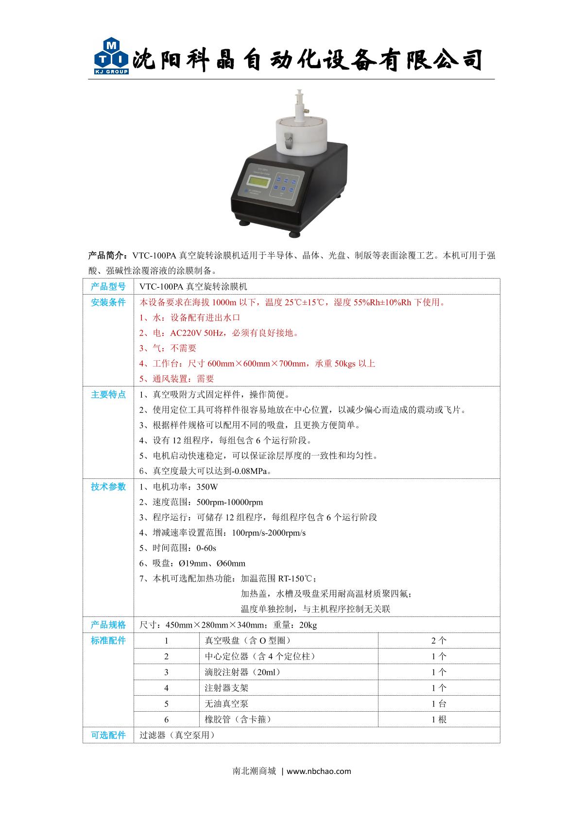 ShenYang KeJing VTC-100PA Vacuum swirling/spinning Film Applicator brochure