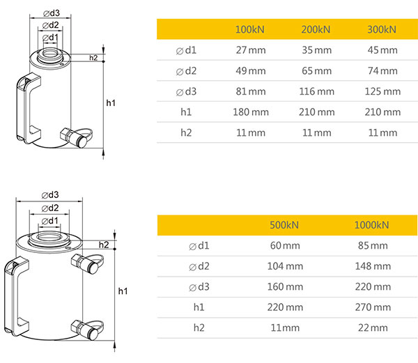 Cylinder center hole | 27mm | 34mm | 45mm | 60mm | 75mm | 86/95mm | |