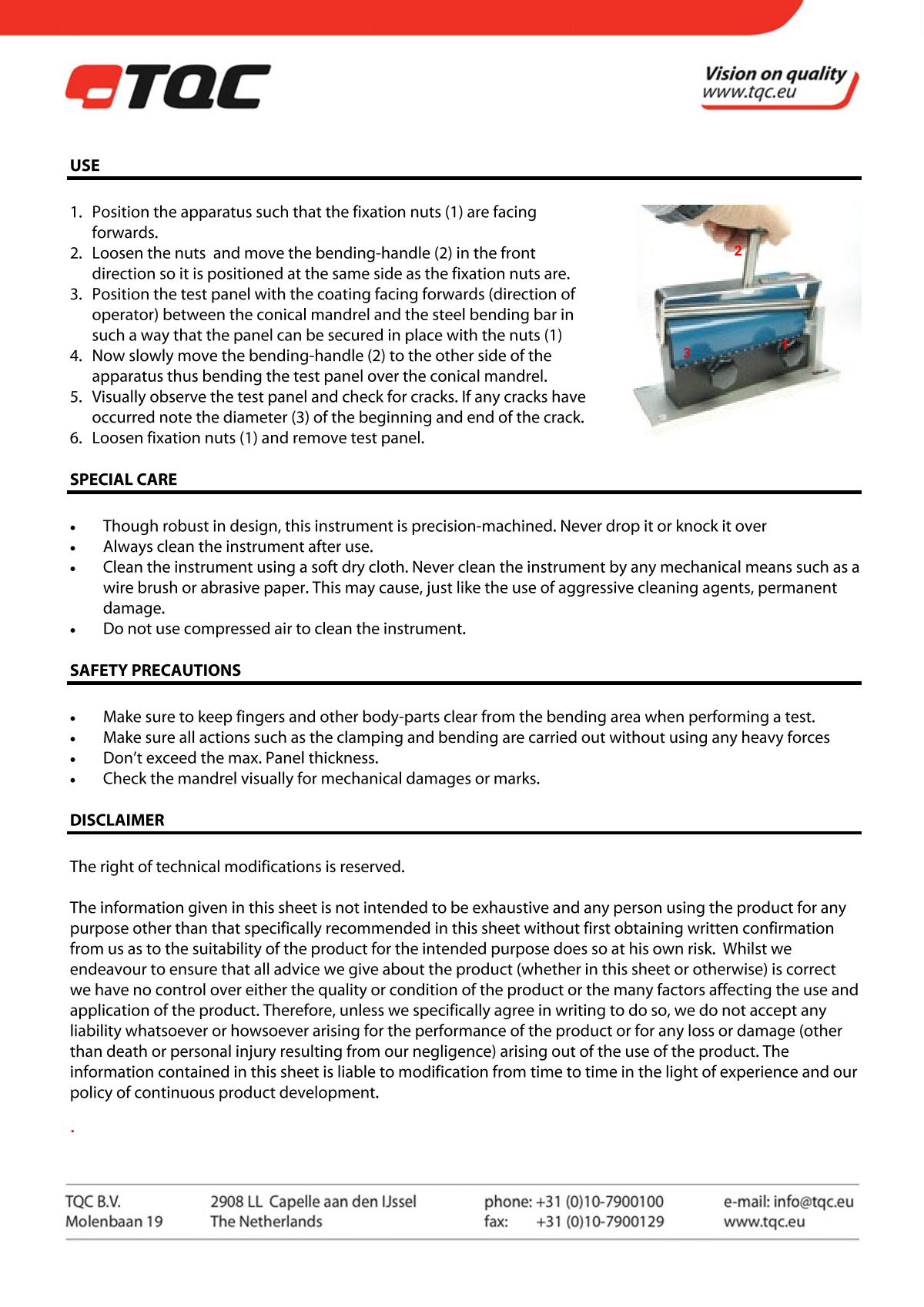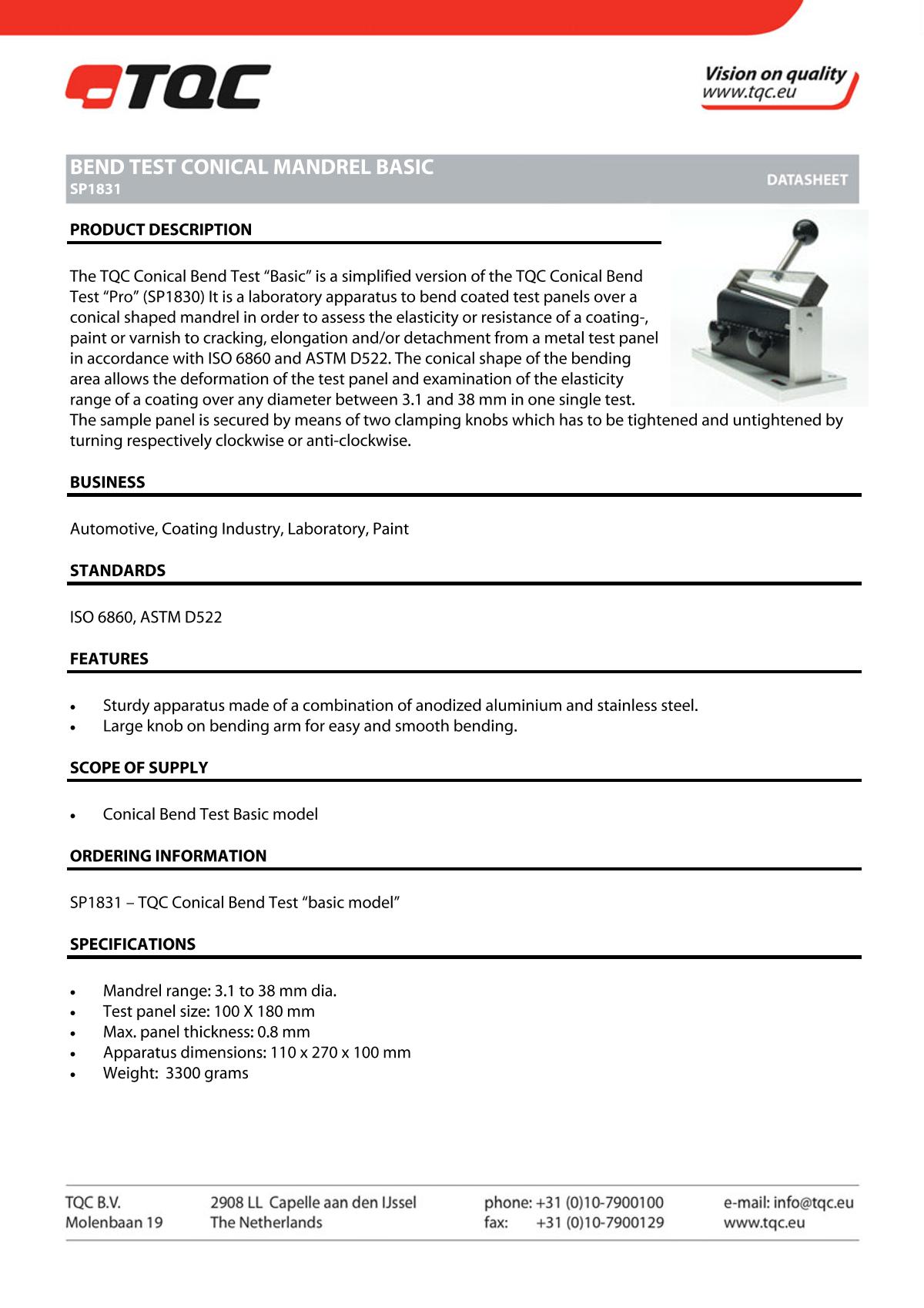 TQC sheen SP1831 Conical Mandrel Tester brochure