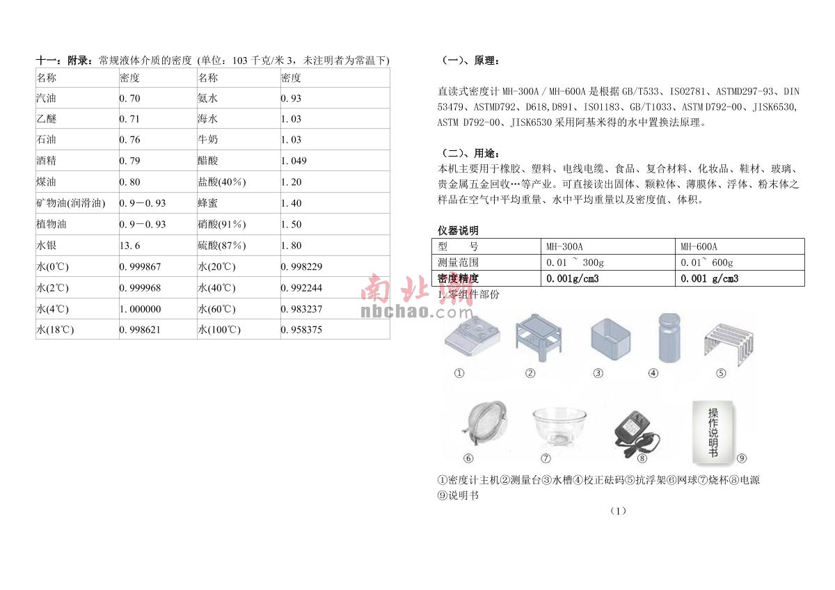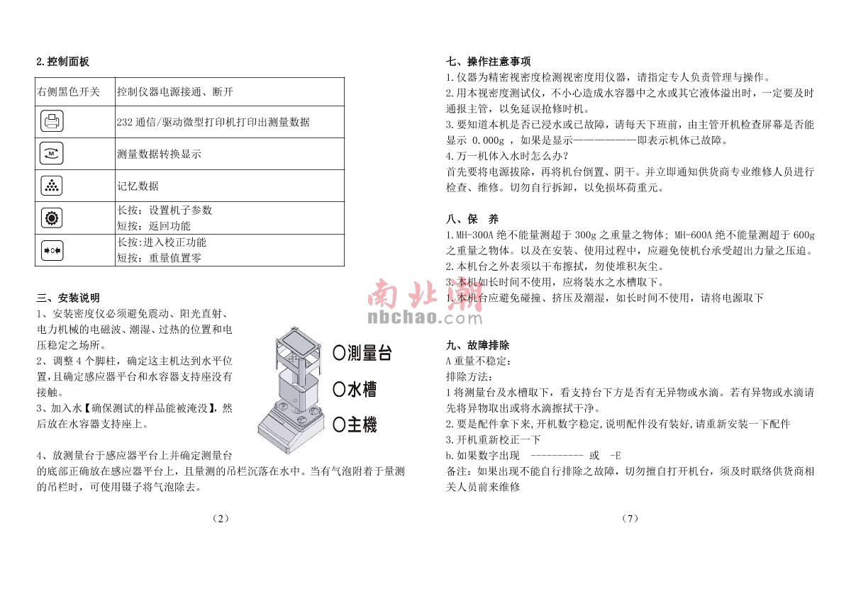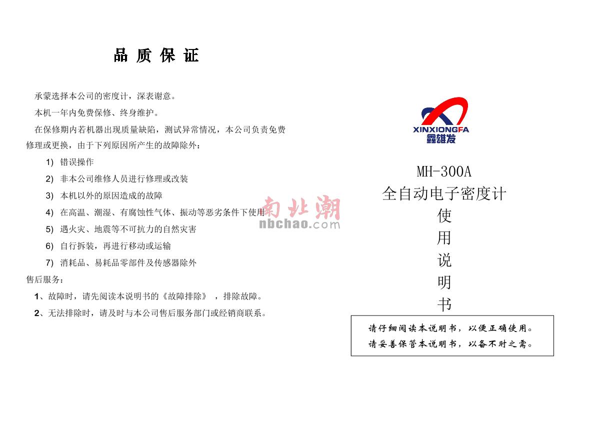 XIONGFA MH-600A Solid Density Meter Manual,OI