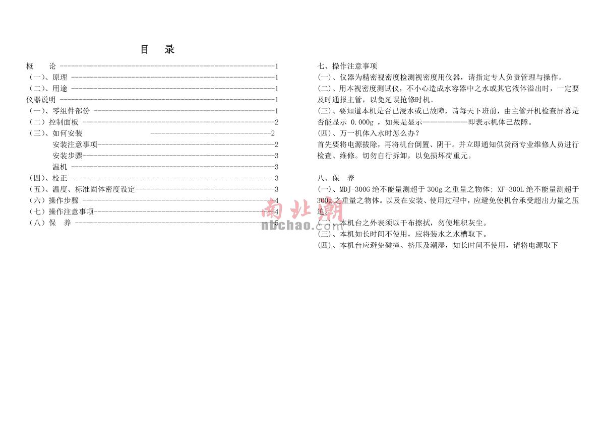 XIONGFA MDJ-300G Liquid Density Meter Manual,OI
