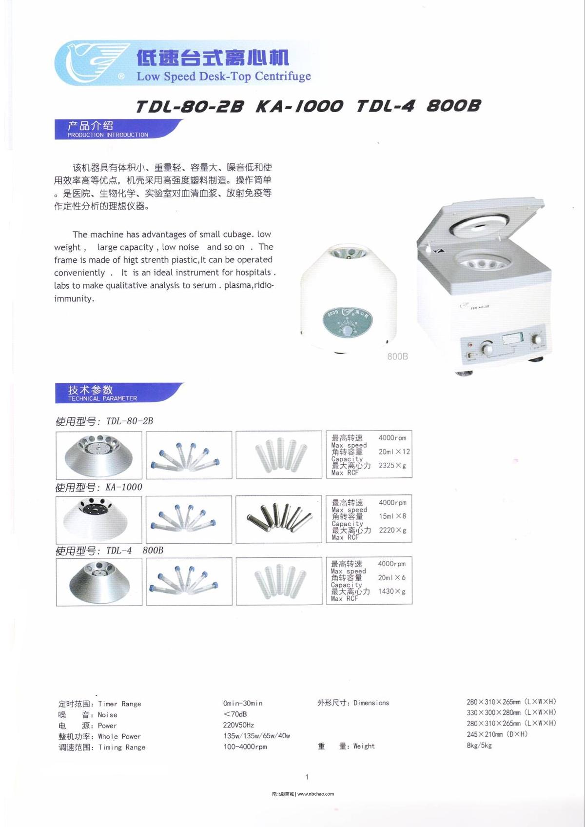 anke TDL-4 Low Speed Desktop Centrifuge brochure