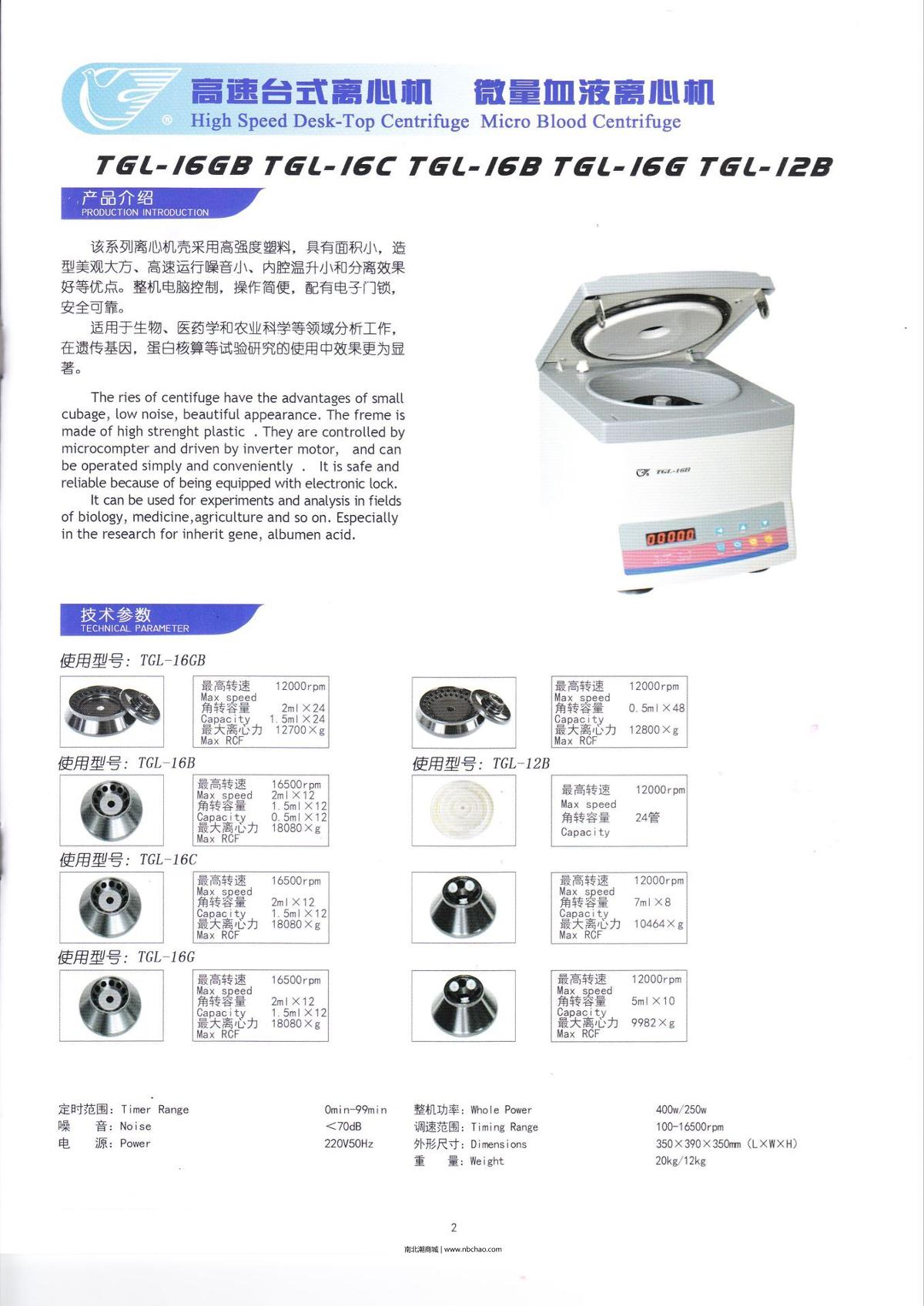anke TGL-16B High Speed Desktop Centrifuge (Frequency Conversion) brochure