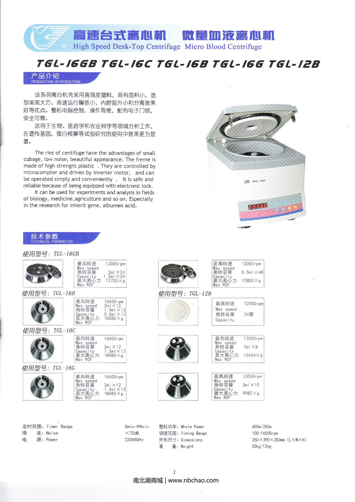 - 8anke TGL-16aR High Speed Refrigerated Centrifuge brochure
