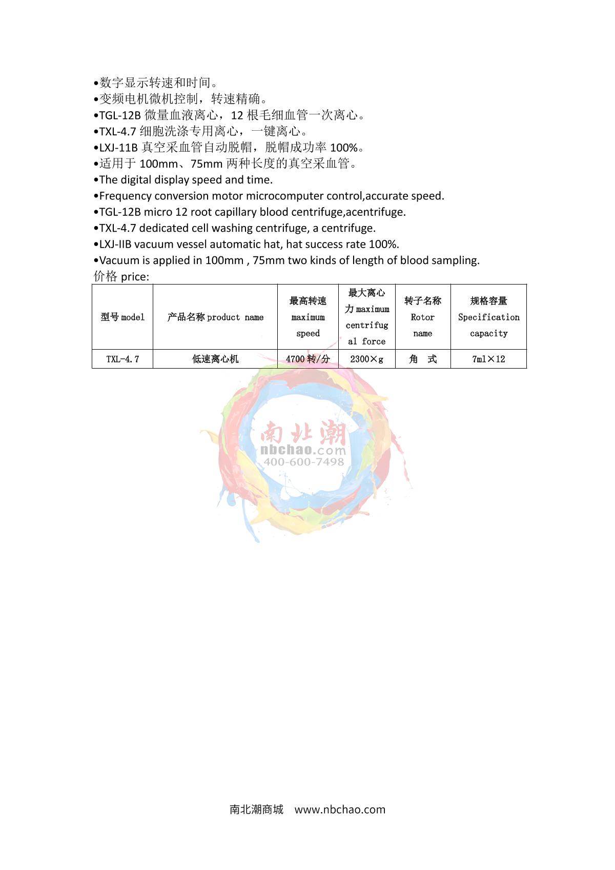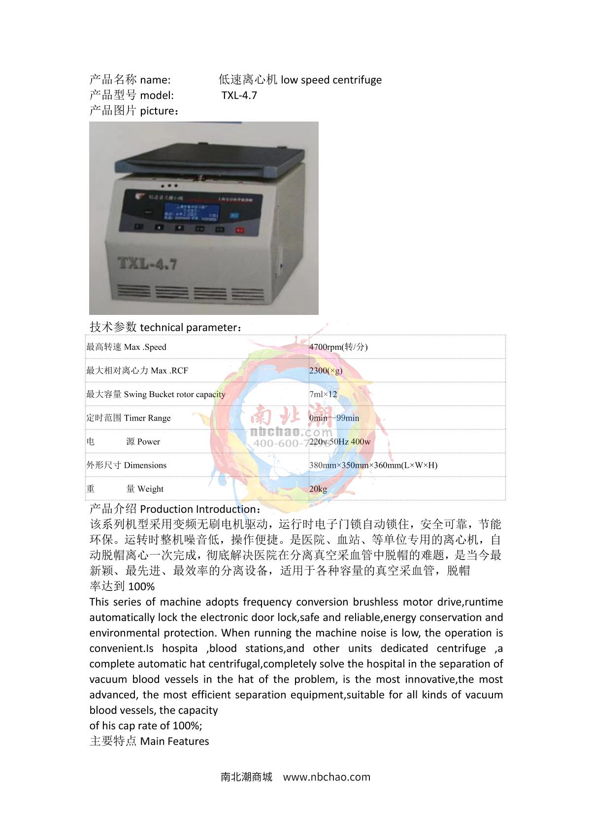 anke TXL-4.7 Low Speed Desktop Centrifuge (Variable Frequency) brochure