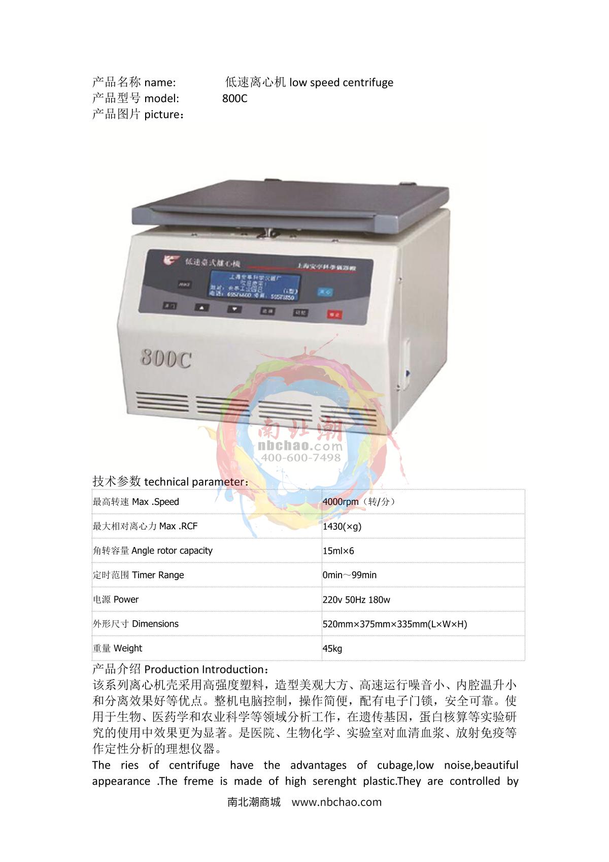 anke 800C Low Speed Desktop Centrifuge brochure