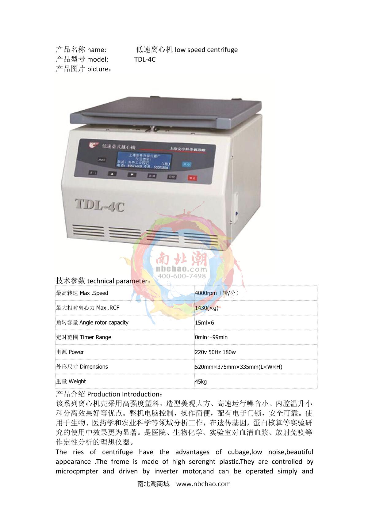 anke TDL-4C Low Speed Desktop Centrifuge brochure