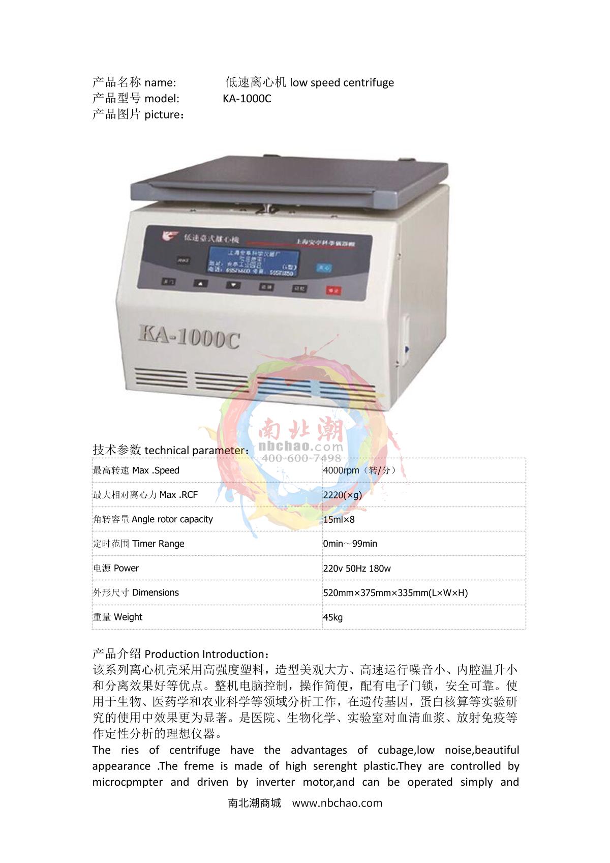 anke KA-1000C Low Speed Desktop Centrifuge brochure