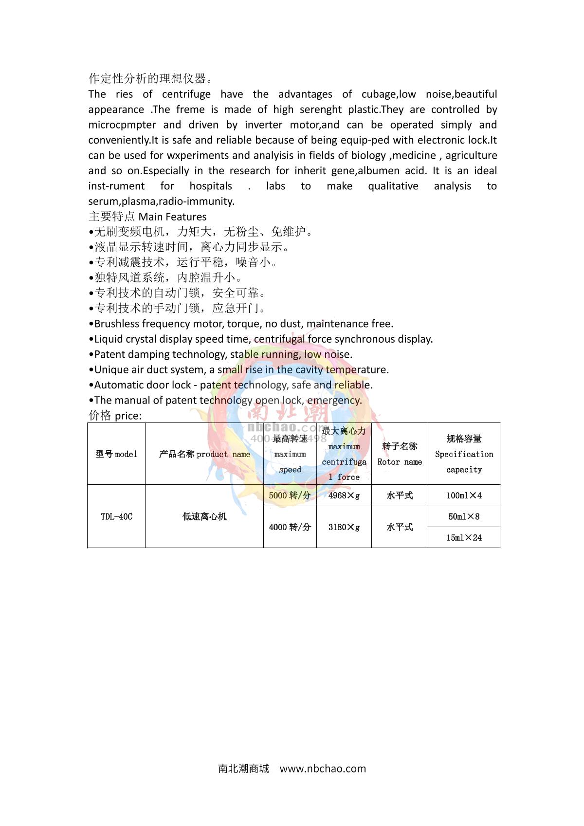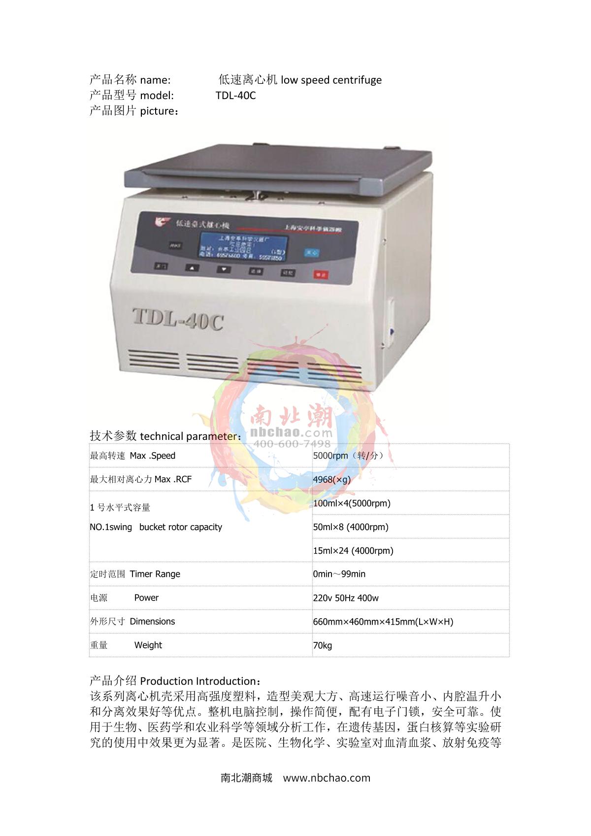 - 10shidaibeili DL4-40 Low Speed Large Capacity Centrifuge brochure