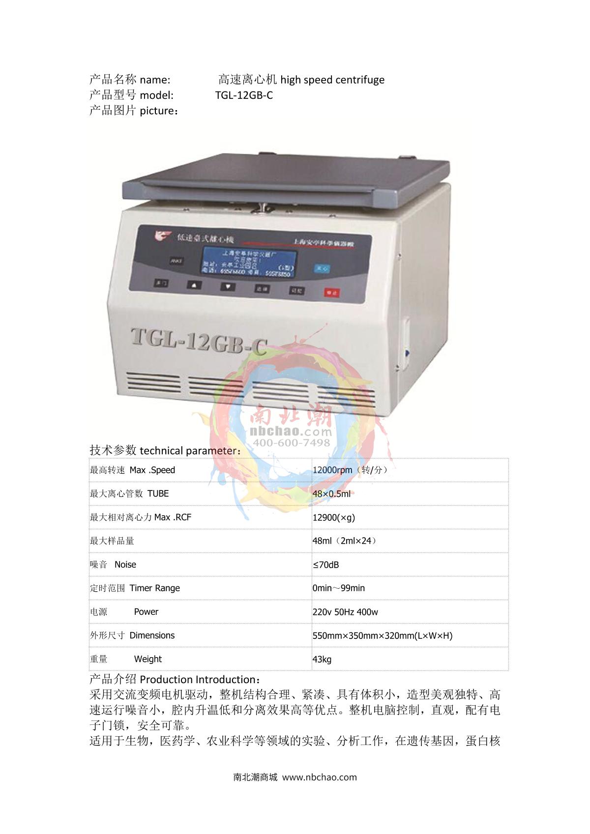 anke TGL-12GB-C High Speed Desktop Centrifuge brochure