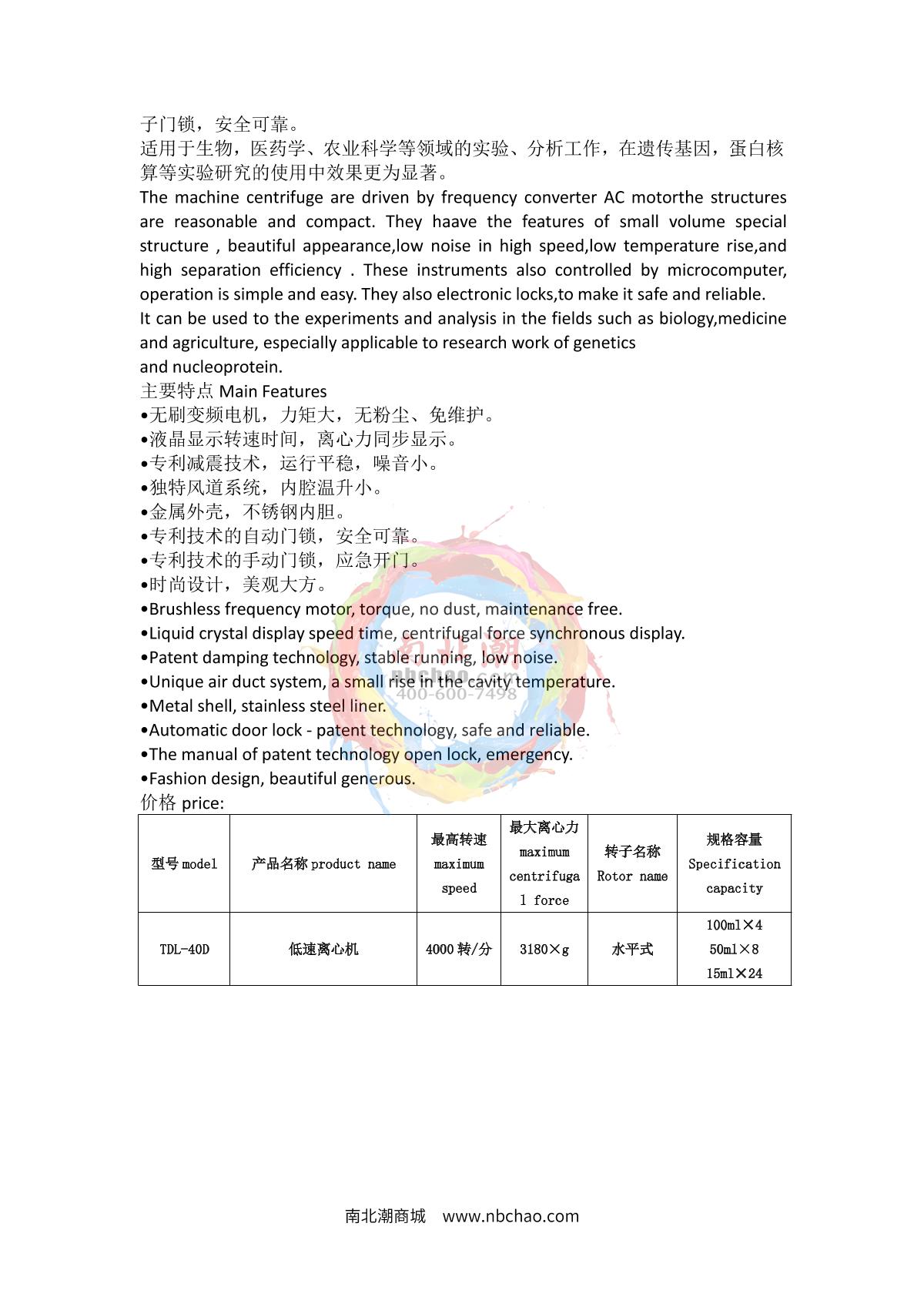 - 7anke 800B Low Speed Desktop Centrifuge brochure