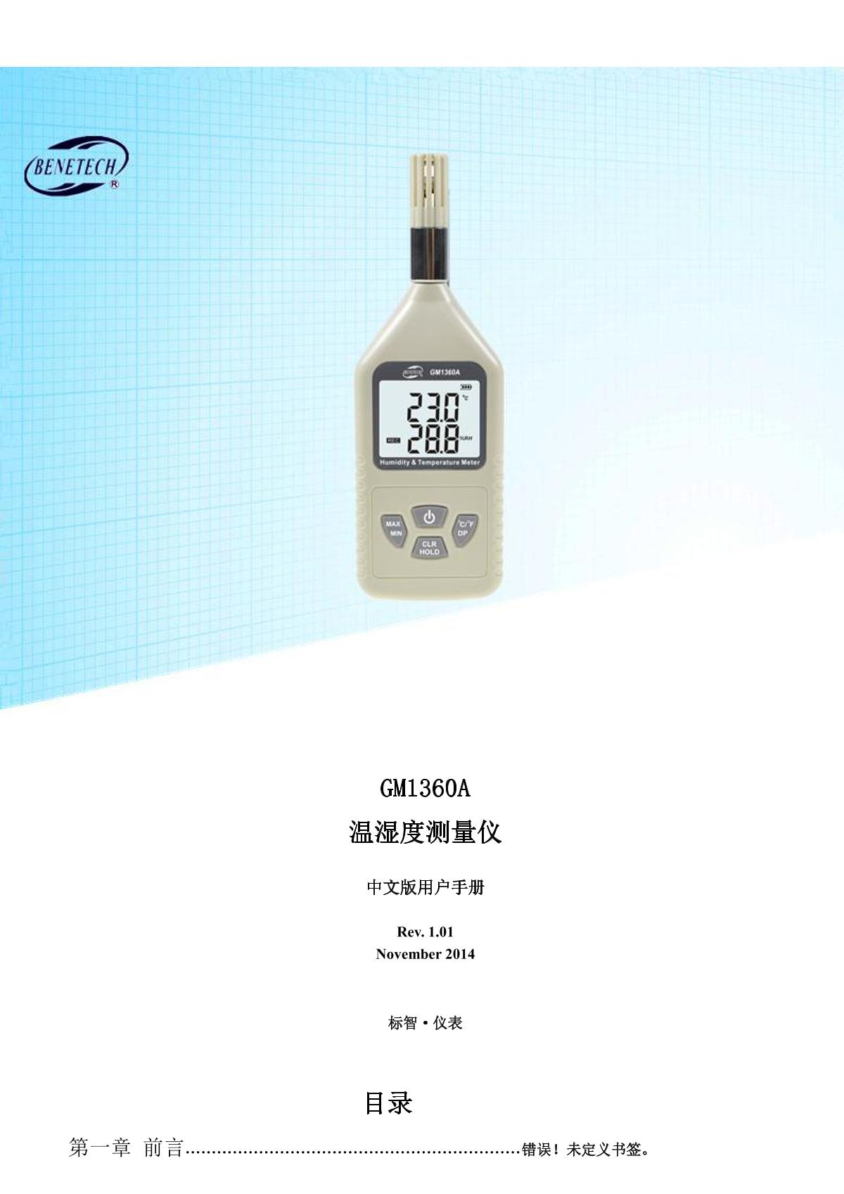 - 9BENETECH GM1360A Digital Thermohygrometer Manual
