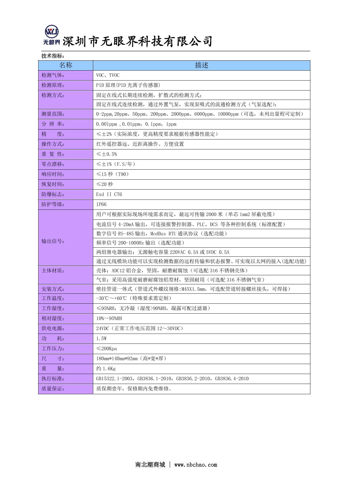 - 5EYESKY ES10B00-VOC(0~1000ppm) Stationary VOC Detector brochure