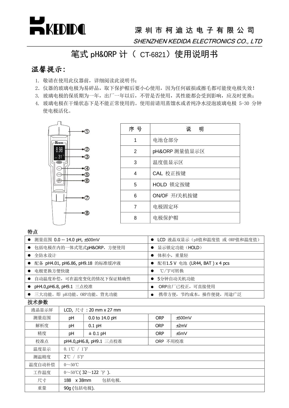 Kodida CT-8022 ORP meter Oxidation-reducton potential metering range: ± 1200mVLCD±1200mV1mV¥399.0SE -