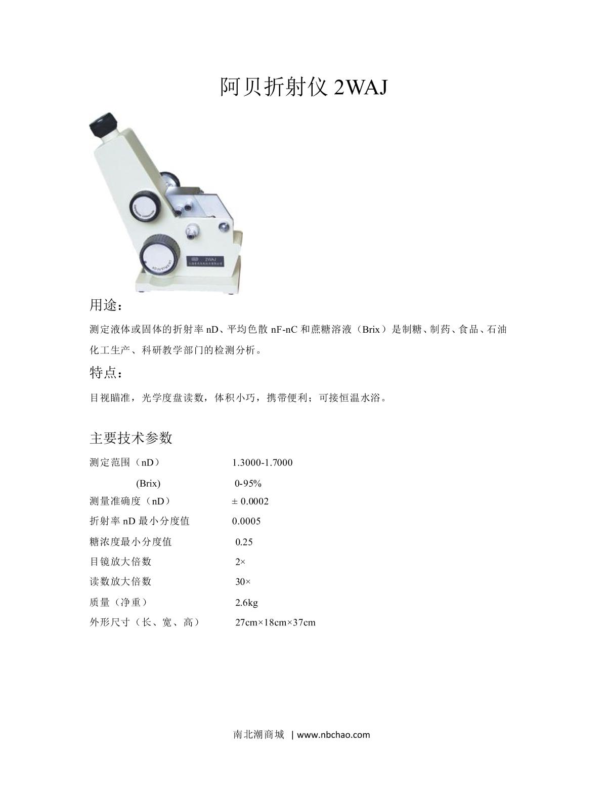 SUOGUANG 2WAJ Monocular Abbe refractometer, measuring range 3000-1.7000 nD1.3000~1.7000nD±0.0002nD0.0005nD¥1750.0SE -