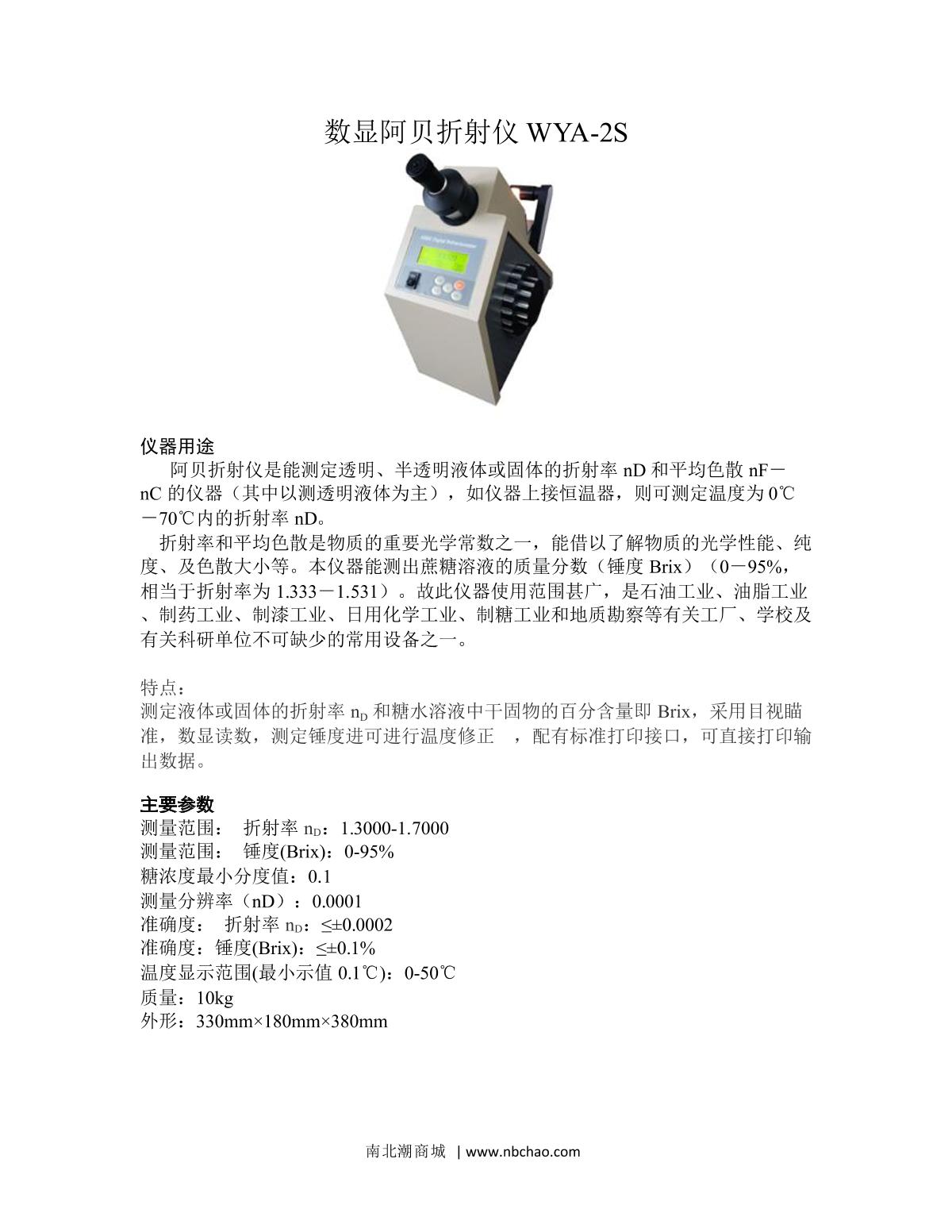 SUOGUANG WYA-2S digital Abbe refractometer, LCD digital display, with printing interface1.3000~1.7000nD±0.0002nD0.0001nD¥7490.0SE -