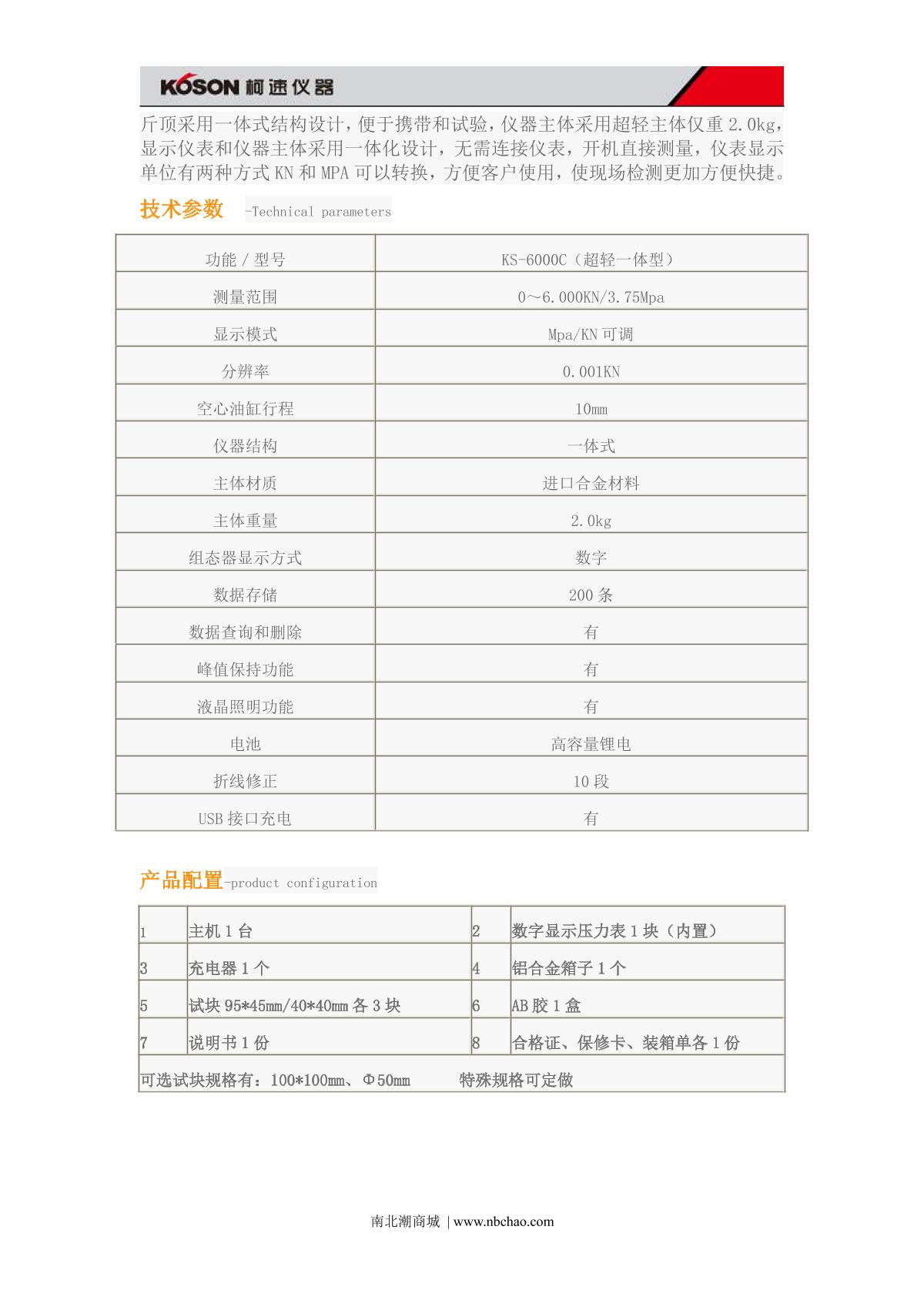 Kosu KS-60S Bond strength Tester measuring range 0~10.000KN/5MpaIntegratedMpa/KN adjustable5Mpa/0~10.000KN¥3020.0SE -