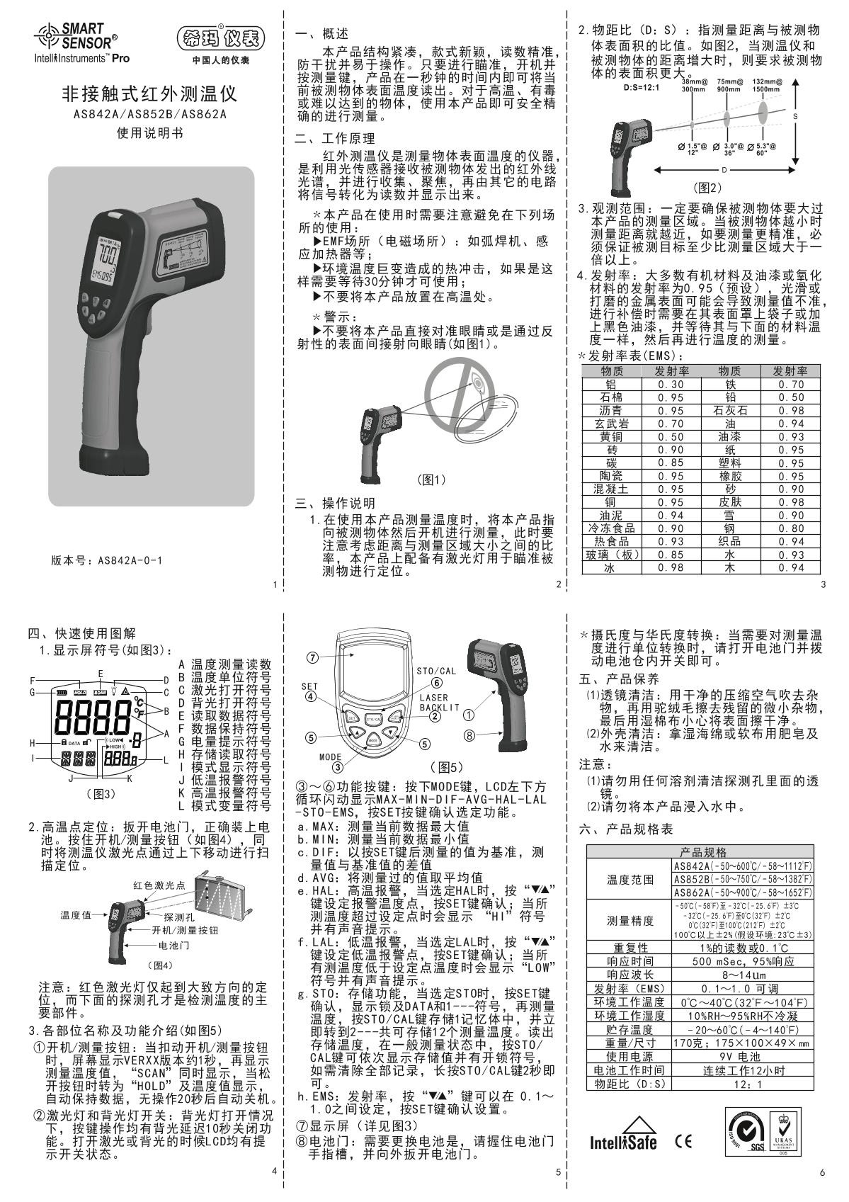 SMART SENSOR AS852B Infrared Thermometer Manual,OI