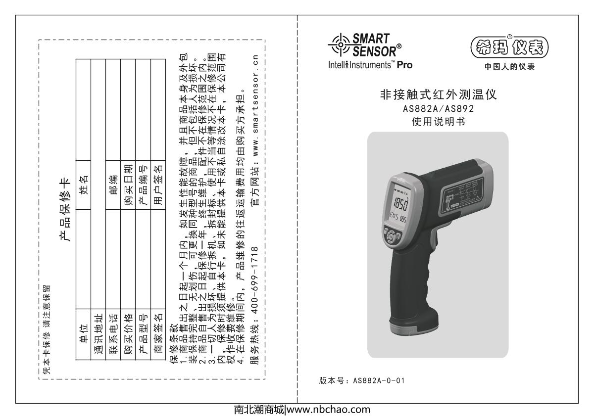 SMART SENSOR AS882 Infrared Thermometer Manual,OI
