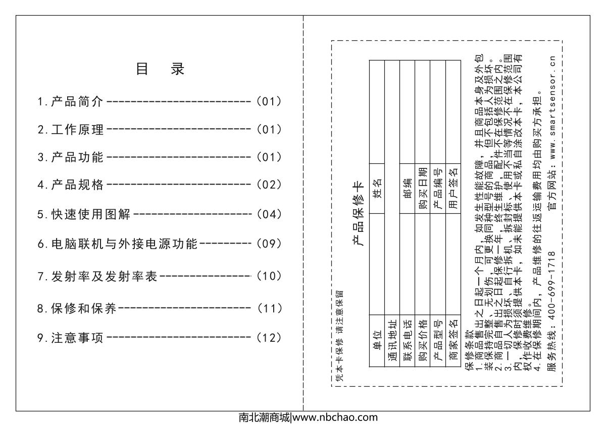 SMART SENSOR smart sensor AS852B Infrared Thermometer temperature range -50 ℃~ 750 ℃-50~750℃±2%0.1℃¥135.0SE -