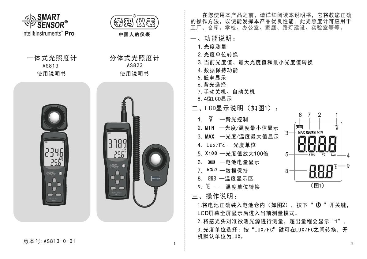 SMART SENSOR AS823 Split luminometer Manual,OI